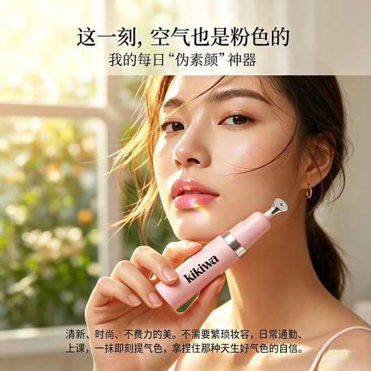 kikiwa 精准把握职场女性需求:快速见效、多效合一、便携百搭、持久稳定。它不做复杂流程,一支搞定保湿、修护、妆前、提亮、抗老五大需求,早上少花 10 分钟,也能拥有完美唇态。