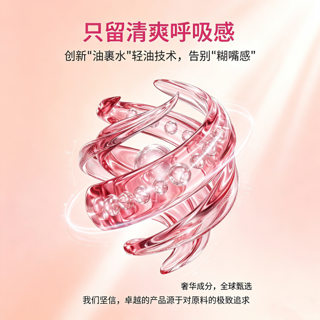 盈润焕亮唇精华质地轻盈,上嘴即刻吸收,不粘杯、不粘发,开会、约会、见客户都不尴尬。妆前打底让口红更服帖持久,告别卡纹斑驳;日间薄涂维持水润,应对空调房干燥环境;夜间厚敷修护熬夜损伤,第二天依旧状态在线。