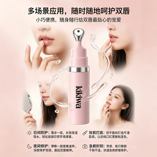 kikiwa 与国际大厂联合研发,品质可靠、成分安全,长期使用可淡化唇纹、提亮唇色,从根源改善唇部状态,减少反复干燥问题。明星推荐、时尚杂志认证、用户口碑爆棚,专业度与实用性兼备。