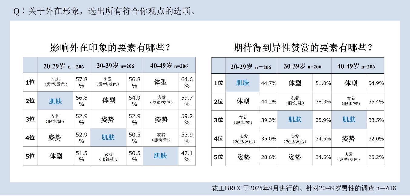 *1   花王BRCC于2025年9月展开的、针对20~49岁男性的美容意识在线调查,样本数 n=618