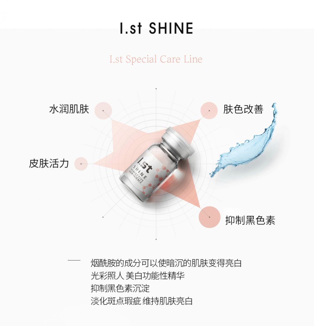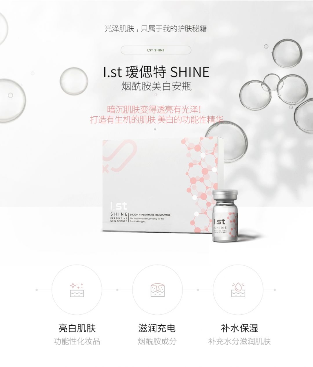 I.ST瑷偲特SHINE烟酰胺美白淡斑安瓶,具有超强美白功效,打造光泽有活力的肌肤,淡化色斑、暗沉,让皮肤呈现由内而外的光泽水润。