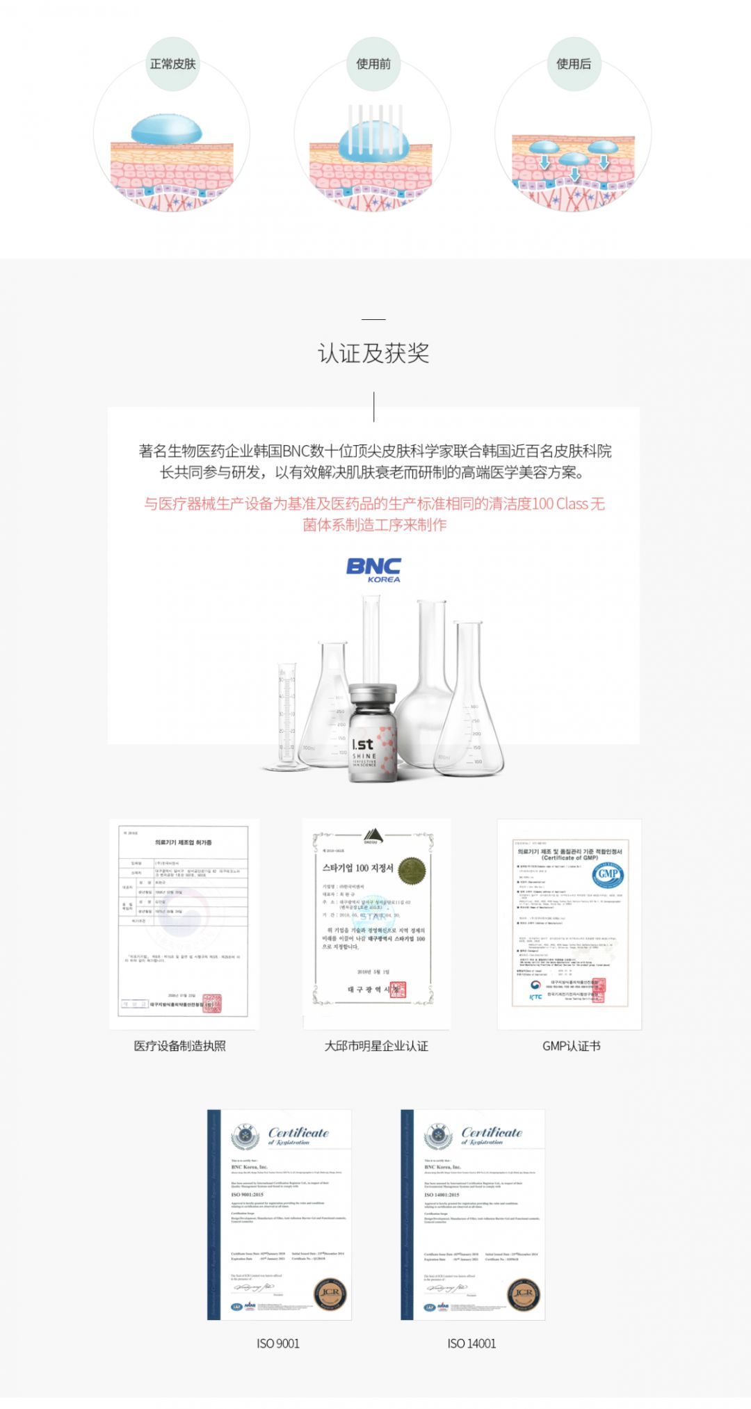 I.ST瑷偲特SHINE烟酰胺美白淡斑安瓶,研发系统是与医疗器械生产设备及医药品相同的清洁度的生产标准,100 Class无菌体系制造工序制作,经KFDA认证的医疗配备GMP设备,无尘室设备符合工作环境自100到10,000级别要求的标准,产品可以放心使用。